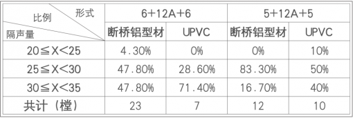 据上海建科检验有限公司门窗隔音测试统计。测试样品来自38家企业,共84樘,分为不同类型和系列;把其中的UPVC和断桥铝型材门窗隔音做对比,同样玻璃配置(6+12A+6、5+12A+5)的UPVC型材隔声性能优于断桥铝门窗。